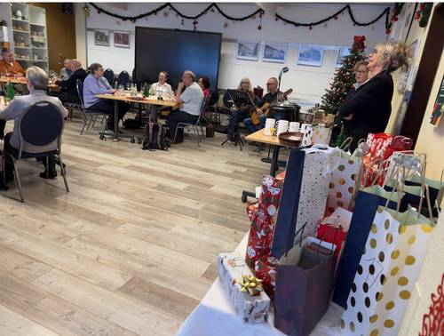 In gemütlicher, familiärer Atmosphäre nahmen 40 Senioren teil. Nach einem festlichen Sektempfang traten Andrea und Dr. Martin Kühl auf und spielten bekannte Weihnachtslieder, die eifrig mitgesungen wurden. Ein leckeres Dreigängemenü, welches gesponsert wurde von „perfekt genießen“ rundete das Programm ab.