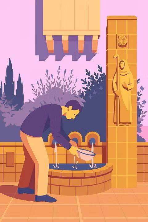 Das Kompen (=Fußbaden) ist eine alte Tradition, die es in vielen europäischen Kurstädten und auch in Japan (Ashiyu) gibt. Es regt die Blutzirkulation in den Füßen an und sorgt noch lange danach für anhaltend warme Füße. (Grafik Steffen Eul FH Aachen)