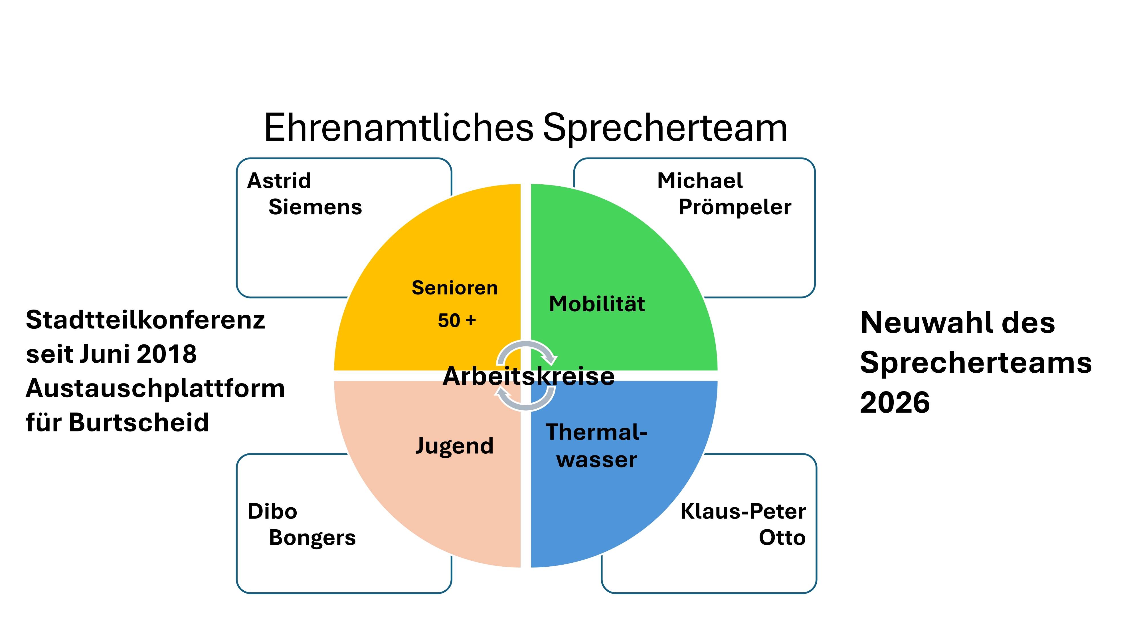 Die Ergebnisse der Fragebogenaktion vom 10.7.2025 wurden präsentiert und die Inititatoren stellten sich der Diskussionm. Mit kleinen Präsenten aus Burtscheid wurde vorbildliches Verhalten der Fahrradfahrer belohnt.