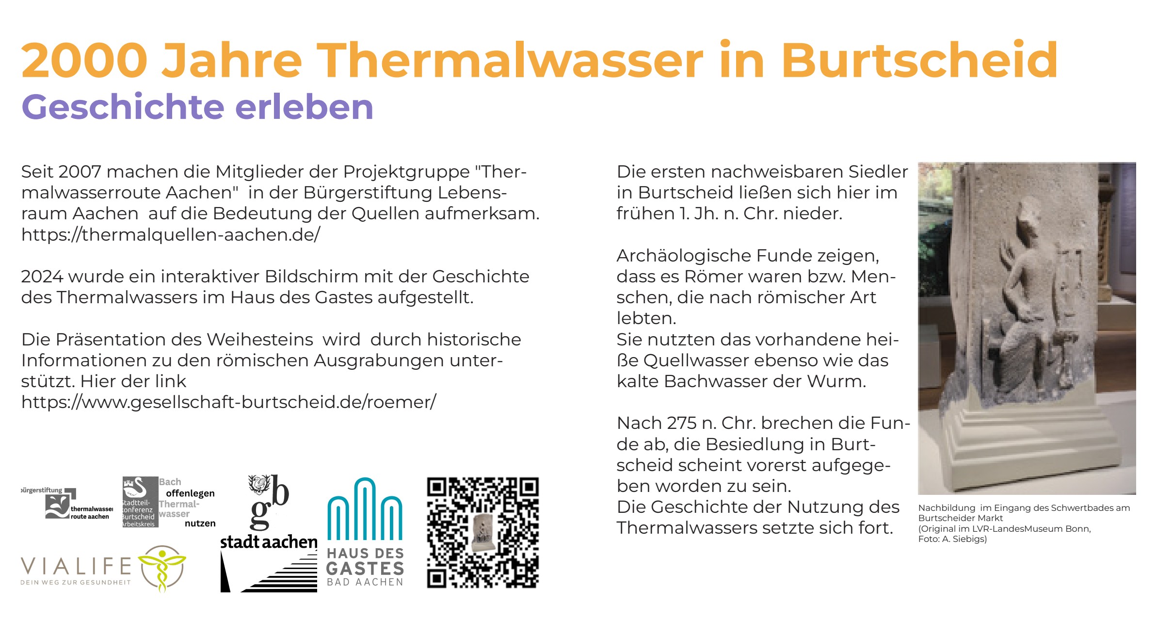 Im Haus des Gastes, Burtscheider Markt 20 können Sie auf einem interaktiven Bildschirm die Geschichte dder Thermalwassernutzung erleben. Viel Spaß!