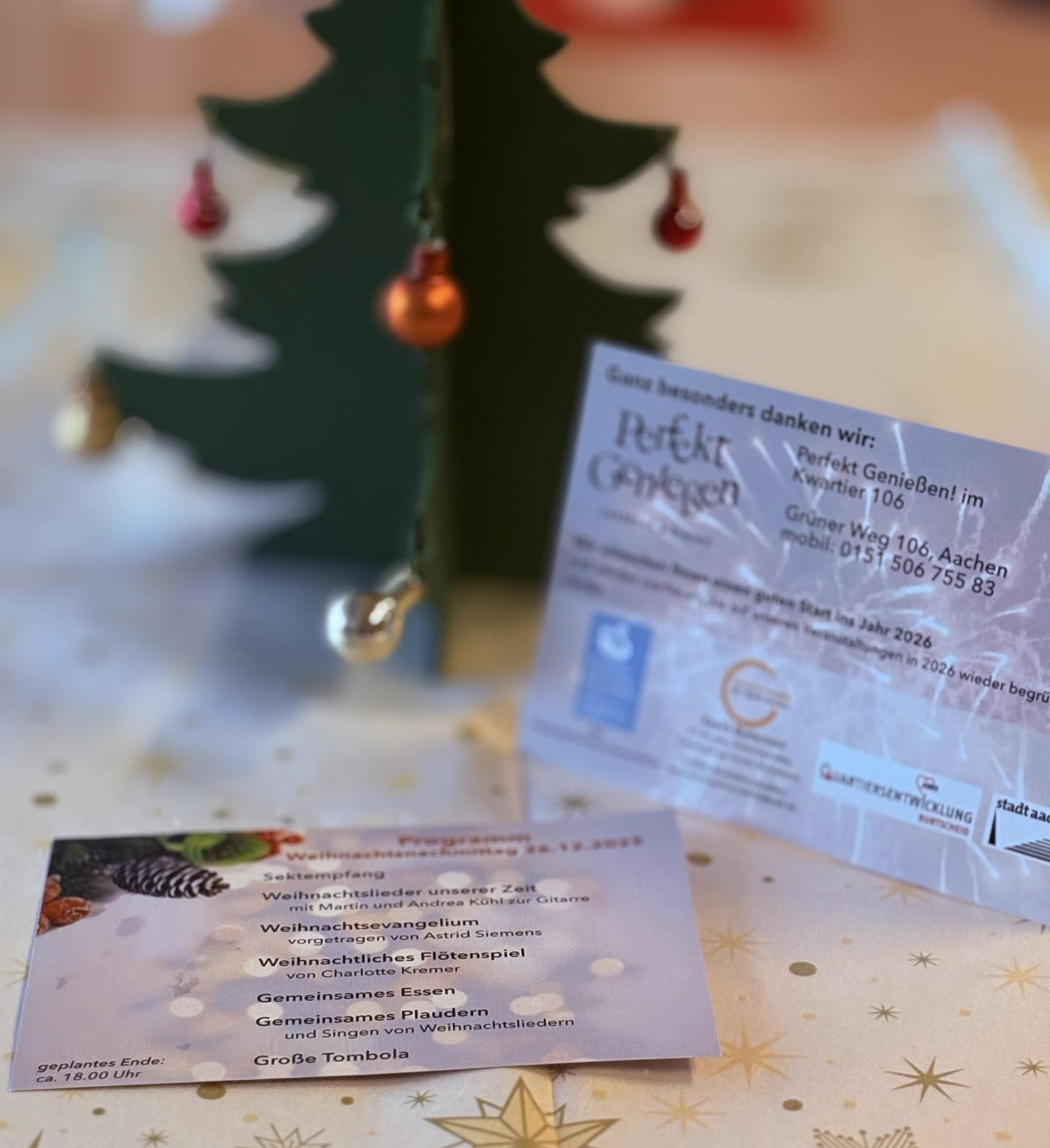 Der Nachmittag war auch für uns eine große Freude, besonders, weil die Gäste sich schon für das nächste Jahr verabredet haben und sogar Tische für die Weihnachtsfeier 2026 reservieren wollten. Unsere Veranstaltung sollte ein Beitrag gegen Vereinsamung und dem Alleinsein in Burtscheid sein.